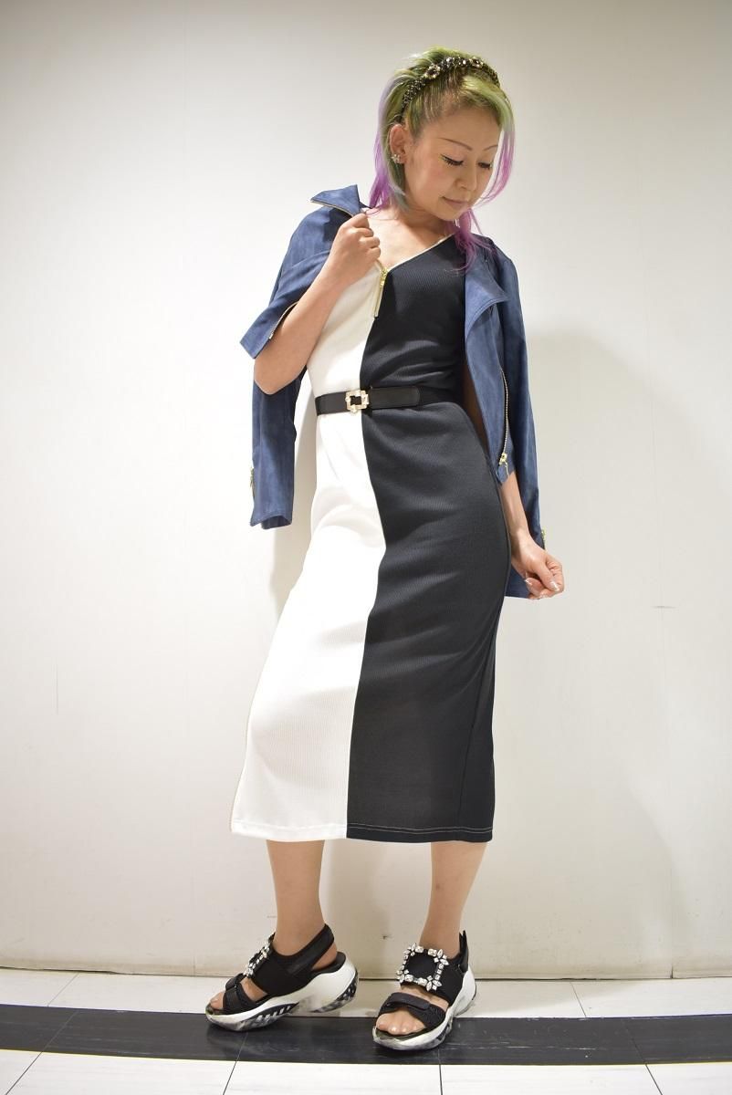 新バイカラー2wayZIPワンピース!速乾リブ素材で着心地抜群。デザイン性抜群のプッチ柄×バイカラーが魅力。セミ〜カジュアルまで活躍。Made in Japan。