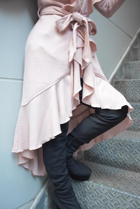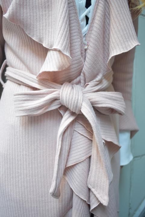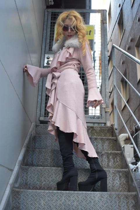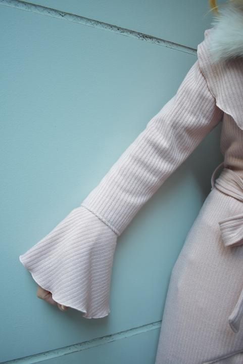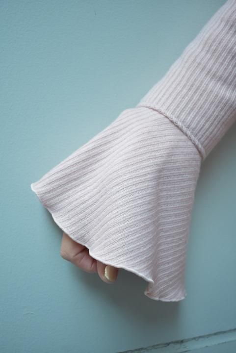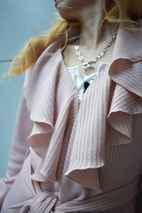 デザイナーtommyが織りなす、ボリューム感溢れるフリルはインパクト抜群。フリルの周りも丁寧なメロー始末で、柔らかい印象を与えてくれます。生地は冬の定番”リブニット”を使用して、柔らかい肌触りとしなやかさが特徴の、これからの時期にマスト素材。