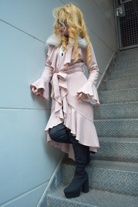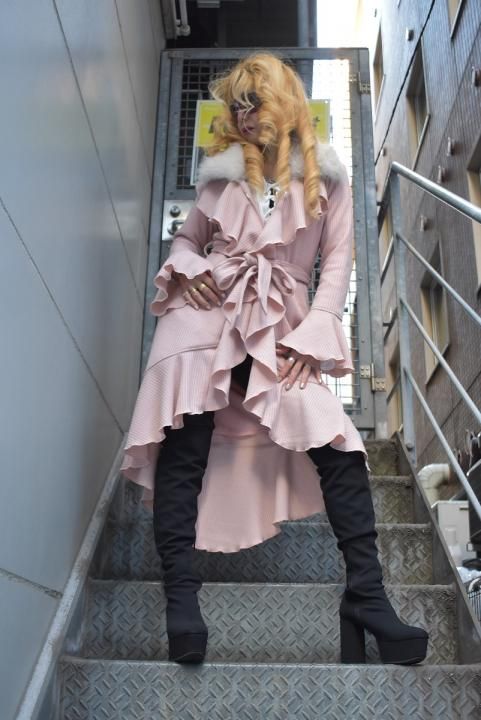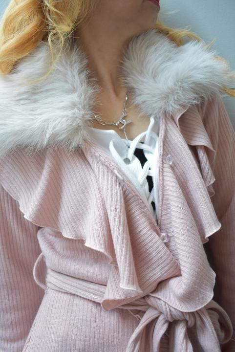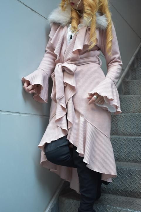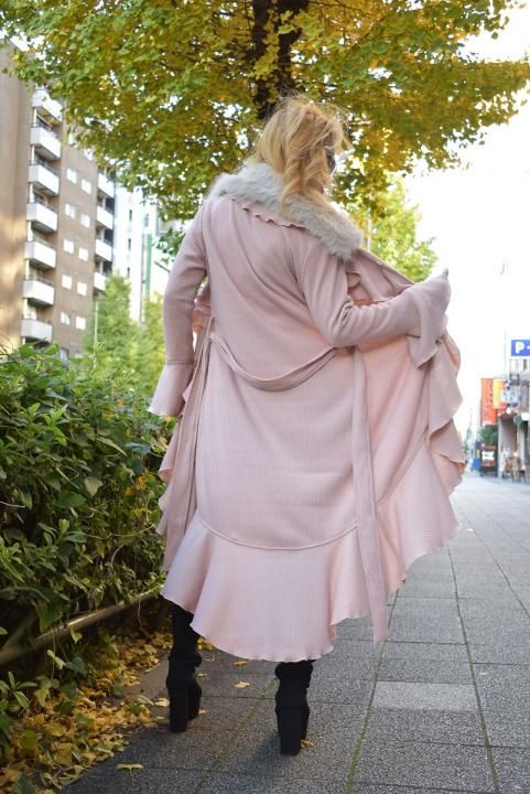 これからの時期に大活躍!ファー付きロングフリルカーデ