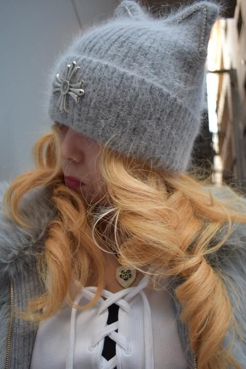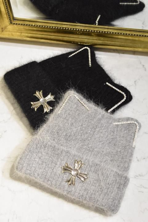 大きなクロスモチーフと猫耳を型取りしたインパクト抜群のニット帽が登場!
